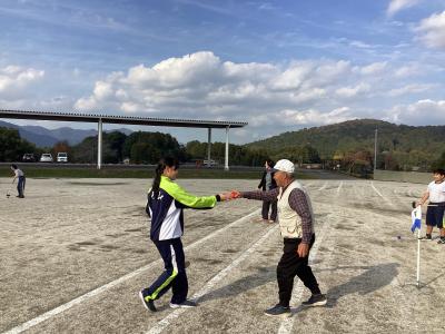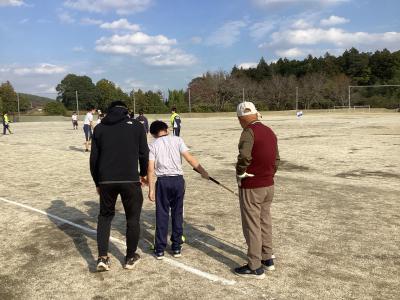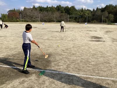 11月14日(金)秋晴れの日の午後、中学部のスポーツクラブの生徒達が地域の「小幡 いきいきクラブ グランドゴルフ部」の方々と本校校庭で交流をしました。準備体操をしてから3つのグループに分かれて活動をしました。地域の方々にクラブの持ち方や打ち方を教えていただき、一緒にグランドゴルフを楽しみました。慣れてくると相談をして徐々にボールポストの位置を遠くにして難しくしていました。