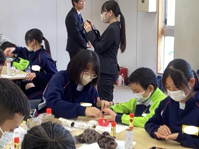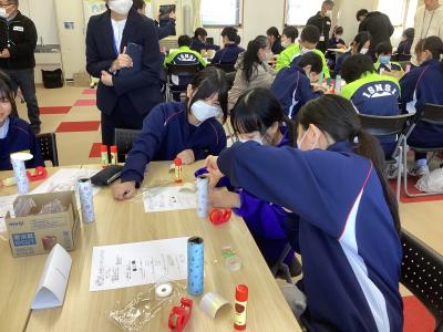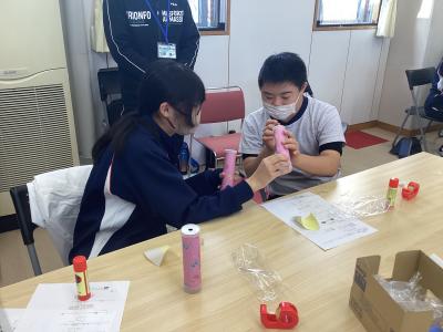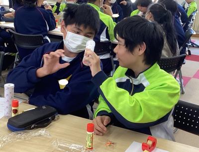 11月20日(木)に八郷中学校の1年4組のみなさんと交流を行いました。今年度は中央青年の家の方が来てくださり、「思いで万華鏡づくり」を行いました。最初は緊張した様子でしたが、万華鏡づくりを通して自然と声を掛け合ったり、見せ合ったりとたくさんの笑顔が見られました。