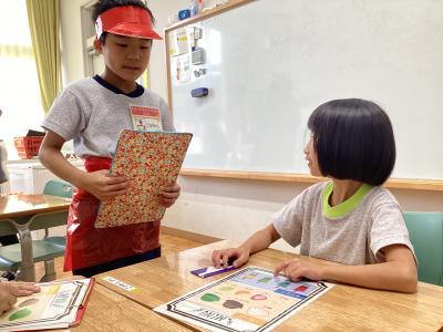各クラスでやりたいお店屋さんを決め、店員役とお客さん役に分かれてお店屋さんごっこを行いました。