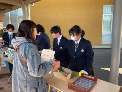 11月12日(水)学校公開2日目もたくさんの方々にご来校いただきました。 高等部では、職業(実技)の時間に制作した作品を実際に販売しました。 生徒が実際にお客様と接し、コミュニケーションを図りながら販売を経験する貴重な機会となりました。